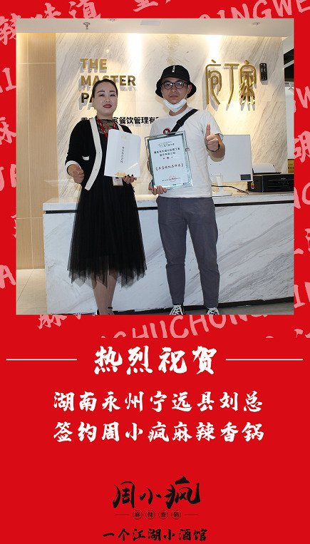 恭賀周小瘋麻辣香鍋湖南寧遠縣簽約成功