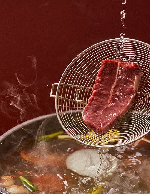 庖丁家水煮牛排火鍋不僅有麻辣紅湯鍋底,更有特色的菌王牛骨湯鍋底和番茄牛骨湯鍋底,深受廣大消費者的追捧。火鍋,不僅能吃到熱氣騰騰、百味合一的美食,更有鮮美可口的湯底可以喝。健康低脂的食材,配上味道鮮美的鍋底,已深深抓住了食客的心。