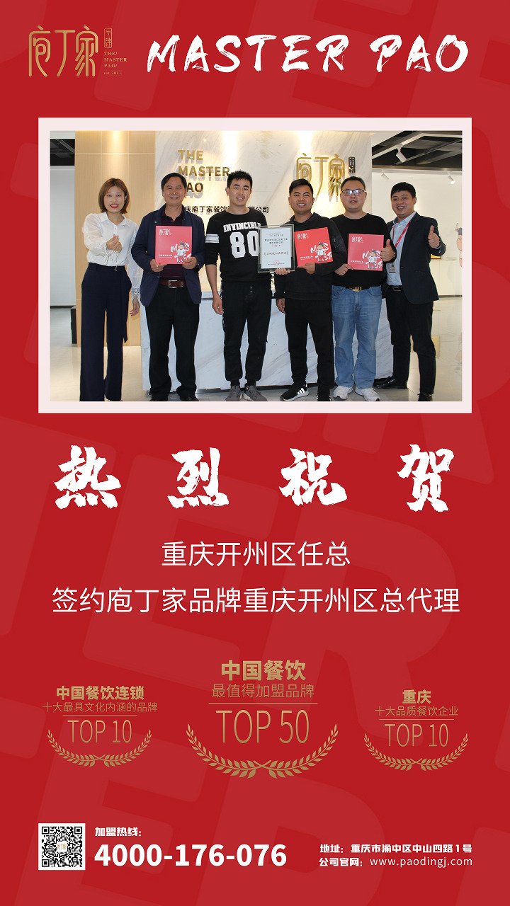 熱烈祝賀重慶開州任總成功簽約庖丁家區域代理