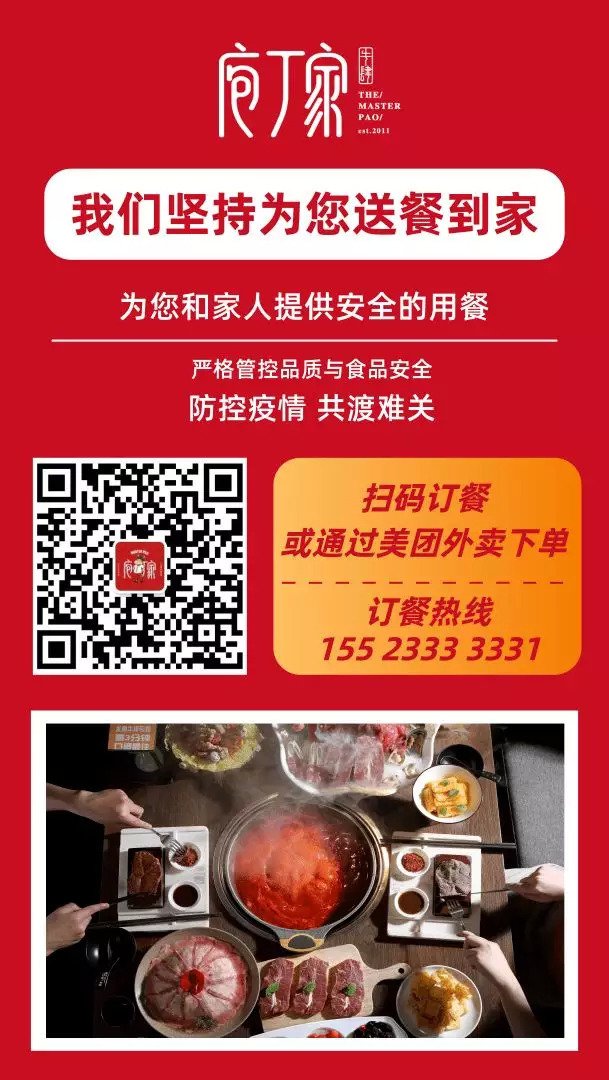 為避免人群聚集,防止病毒交叉感染,庖丁家暫時關閉堂食營業,提倡外賣點單!