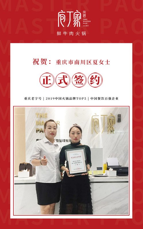 恭賀庖丁家水煮牛排火鍋重慶南川店正式簽約